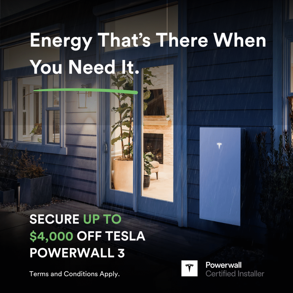 Experience the best Tesla offer today – saving you up to $4,000 on Powerwall 3. Take charge of your home energy, enjoy reliable backup power, and lower your bills. Only through Future Energy, this month only.